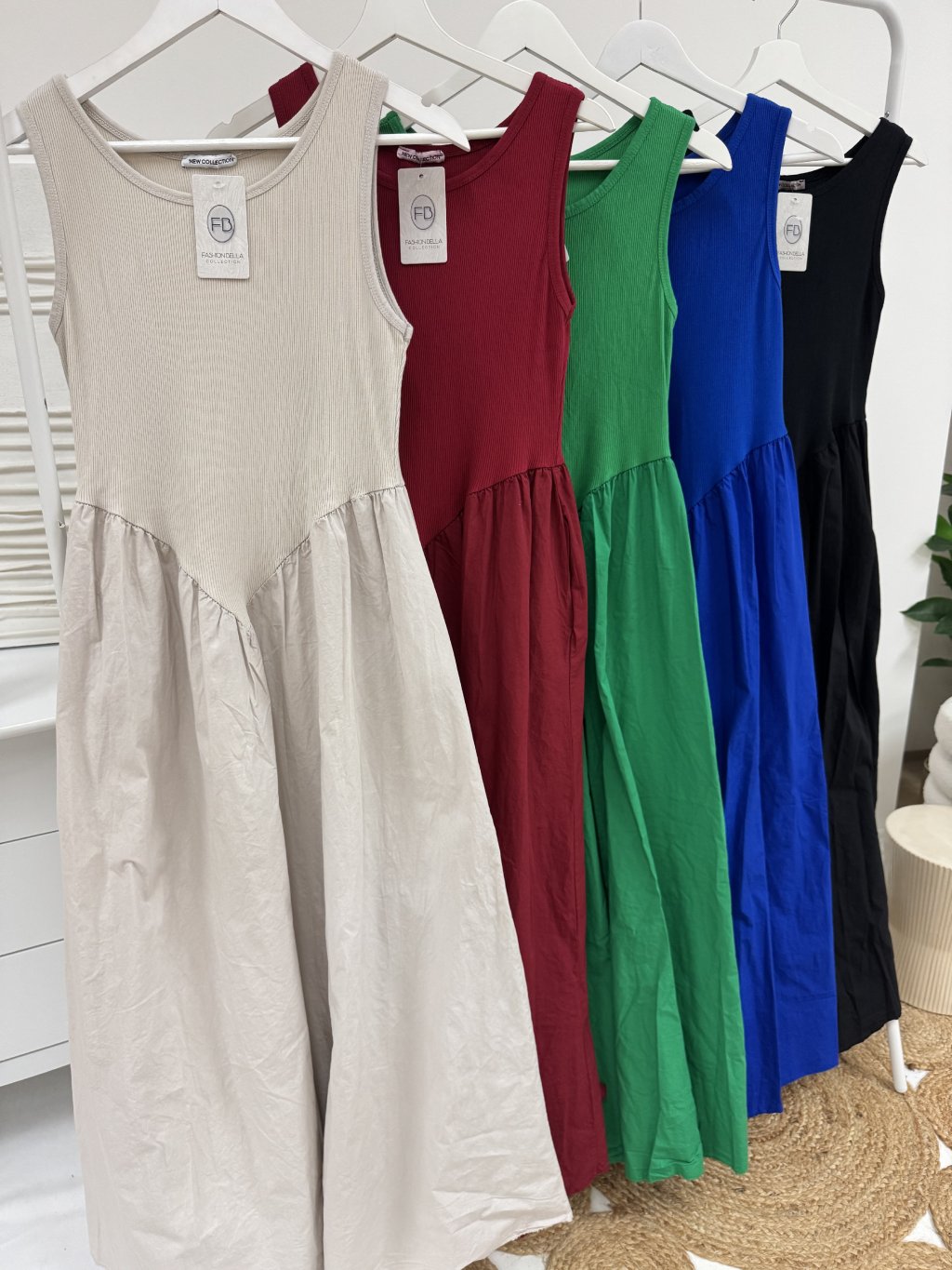 Velmi pohodlné šaty s kapsami, žebrovaný hořejšek a volná sukně, velikost ONE SIZE sedne S-XL