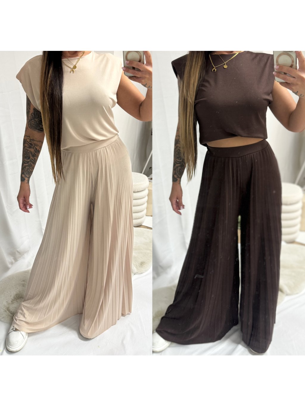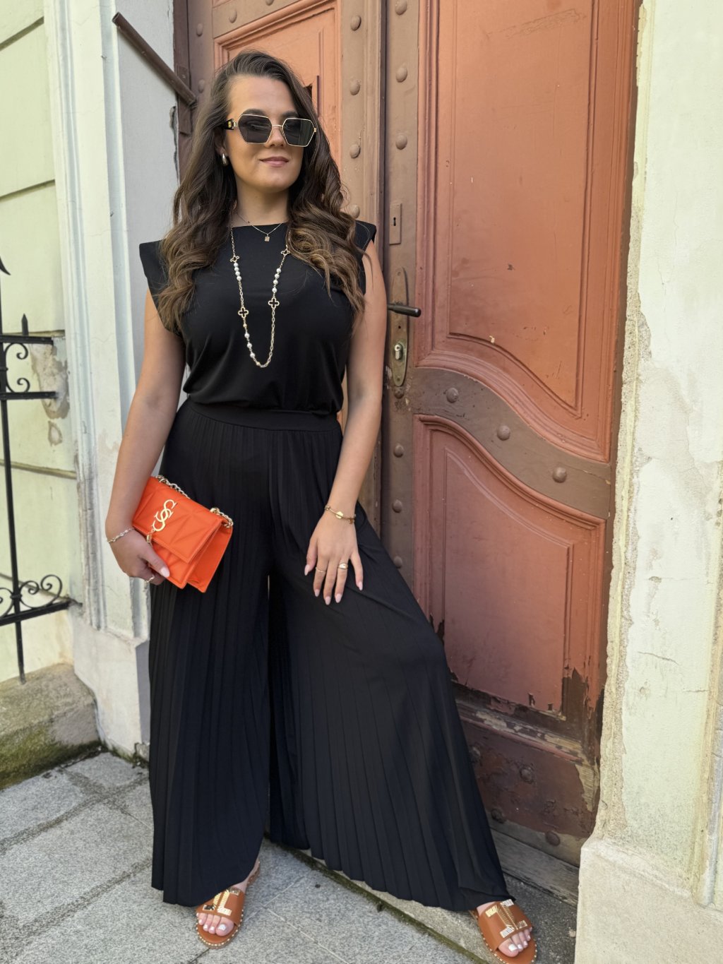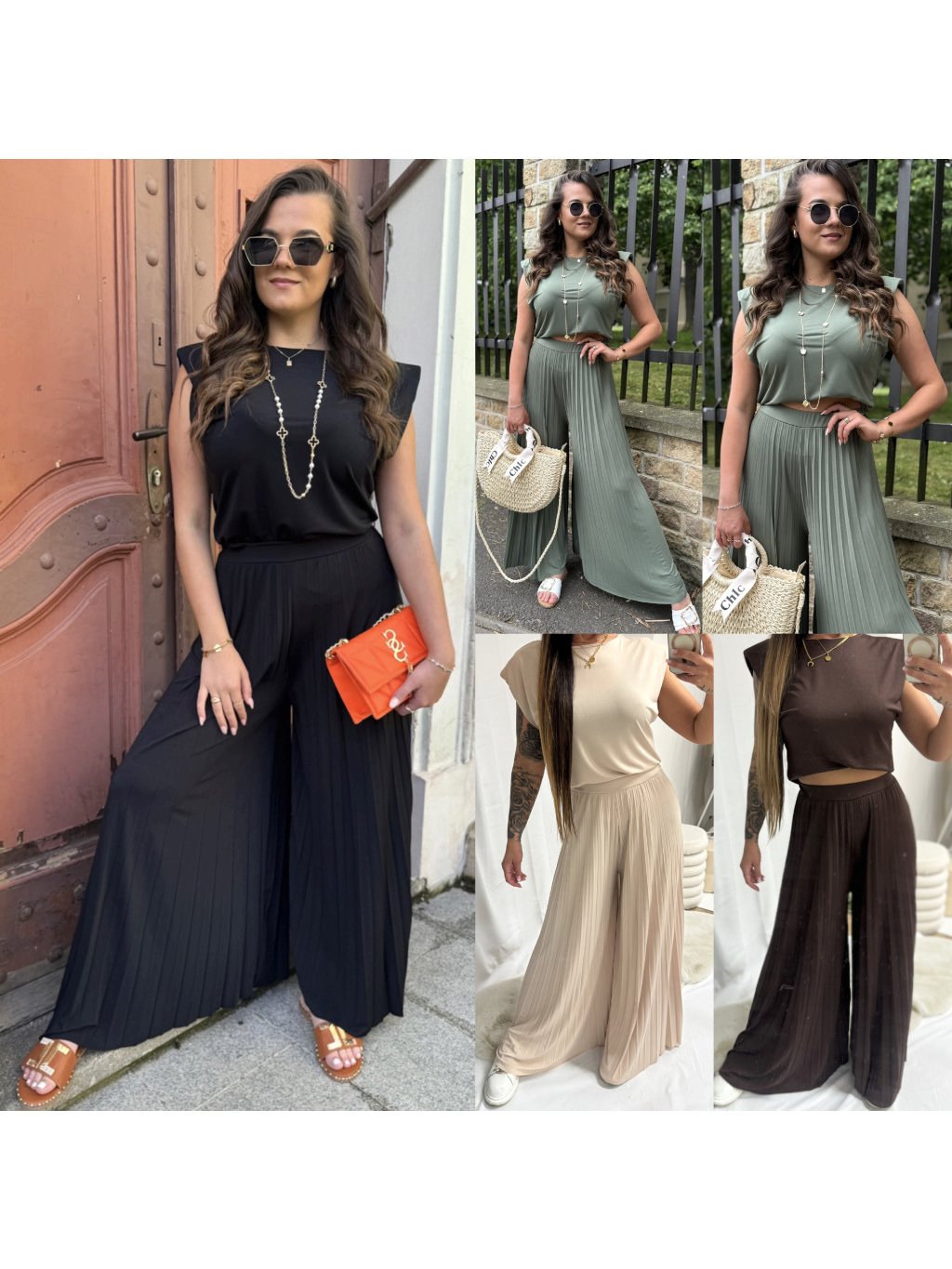 Nádherná souprava top halenka s ramenními vycpávkami plus široké kalhoty, velmi pohodlná, velikost ONE SIZE sedne S-L