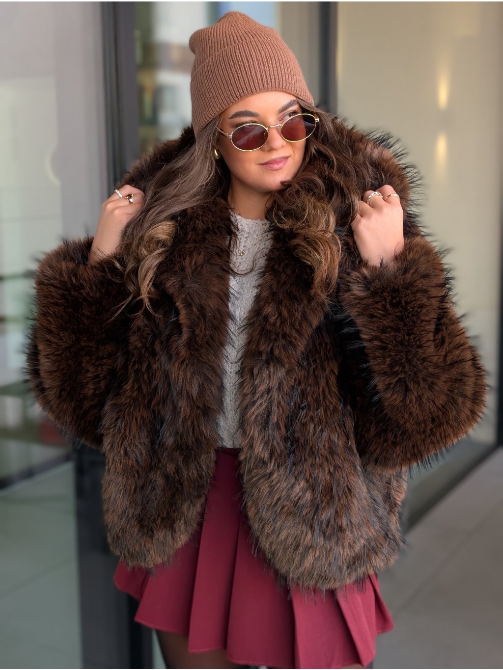 Nádherný kožíšek, zapínání na háčky, velikost ONE SIZE sedne S-L, objemný, luxusní, s kapucí