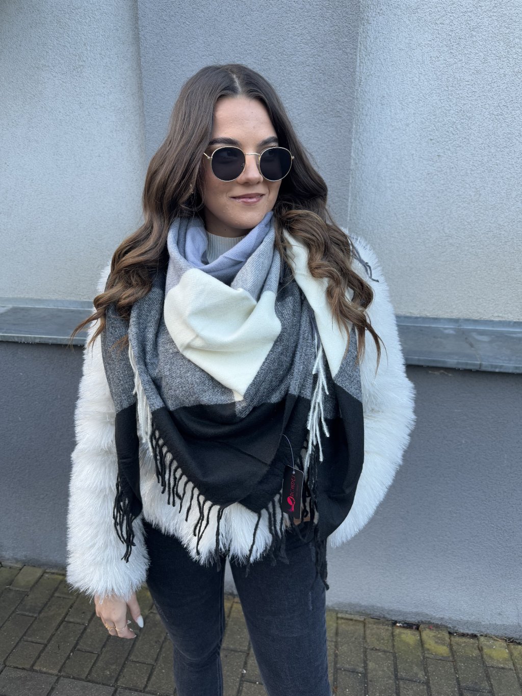 Pléd velký kostka modro šedý