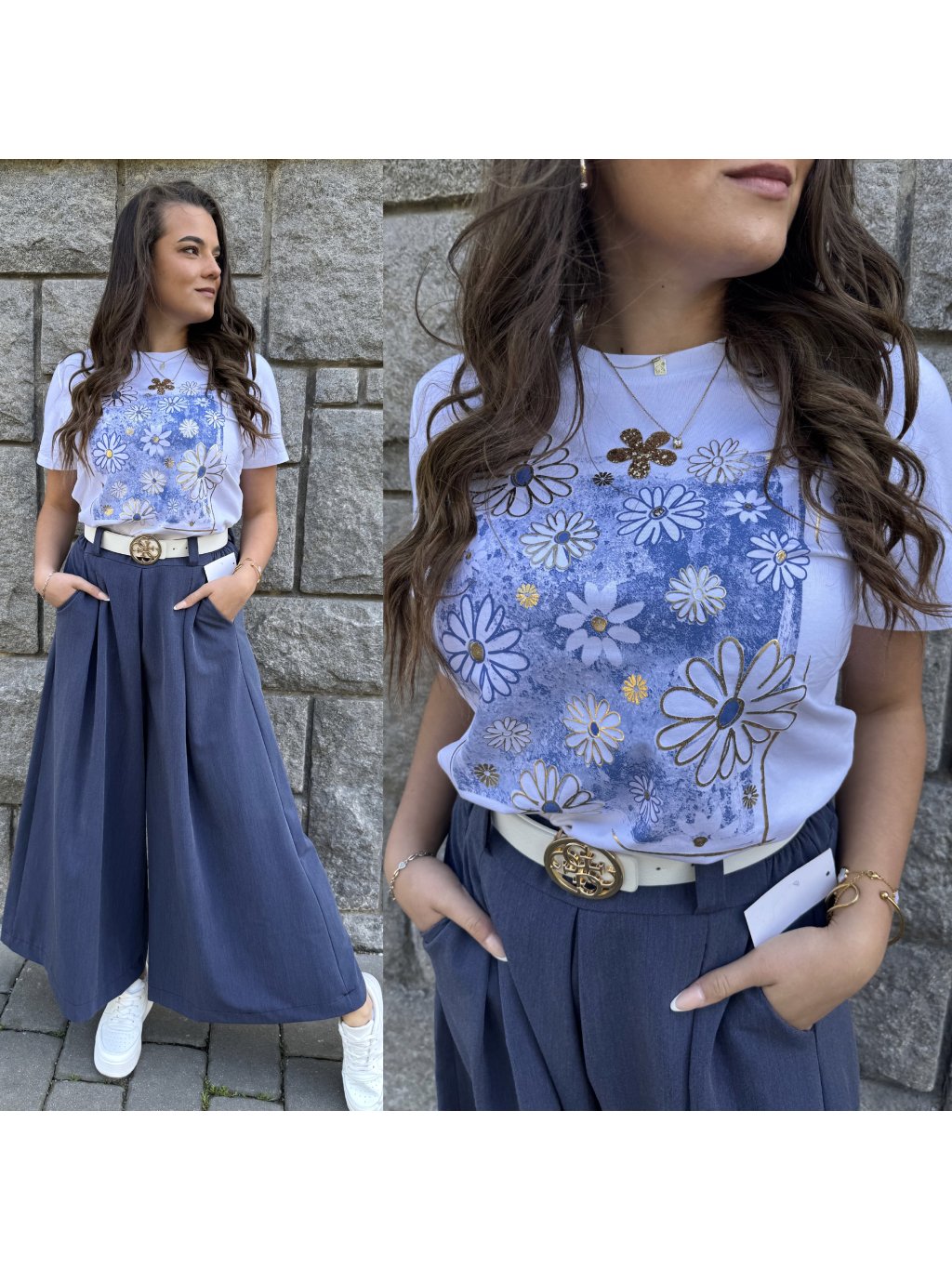 Tričko flowe blue silver
