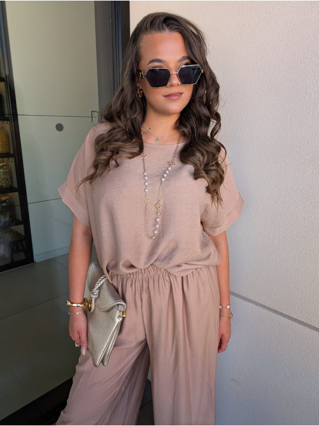 Stylový komplet volná tunika a široké kalhoty na gumu,